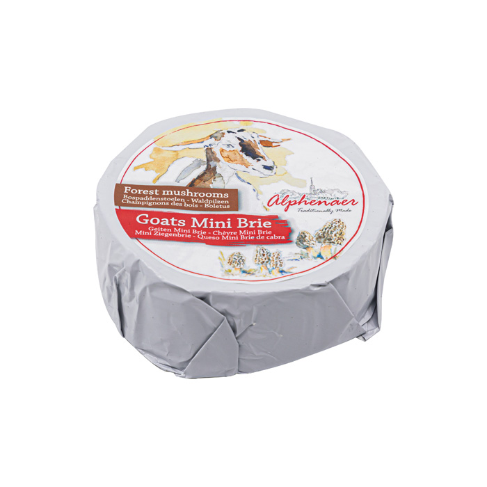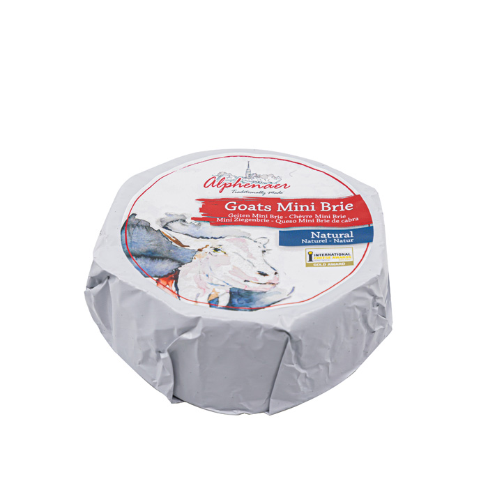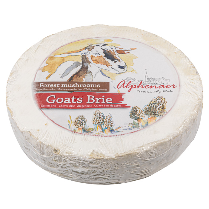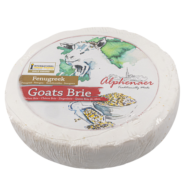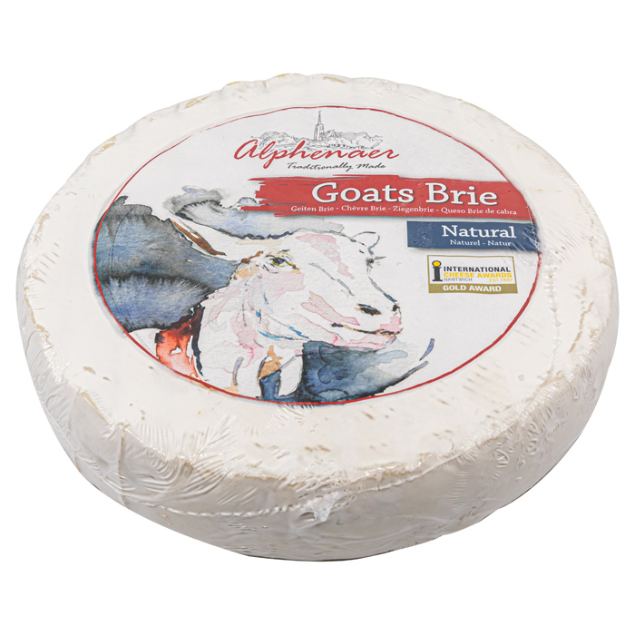 The wonderfully soft Alphenaer (goat)brie and mini brie are prepared according to a traditional recipe. The milk with its natural fat and protein contents gives this cheese a wonderfully soft, creamy taste. After the cheese has been able to ripen slowly, a beautiful white layer forms around the cheese, which gives the brie its specific appearance and delicious taste. The taste varies from soft creamy and firm (young) to spicy and creamy (after full ripening).